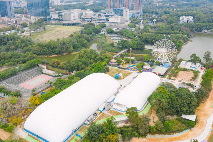 占地面积12000平方米,项目由室内滑雪馆、滑冰馆和综合服务馆组成。三个馆均采用新型气膜结构技术建设,外观新颖,内部无梁无柱的超大空间,可开展室内冰雪运动培训、比赛和大众冰雪娱乐项目。