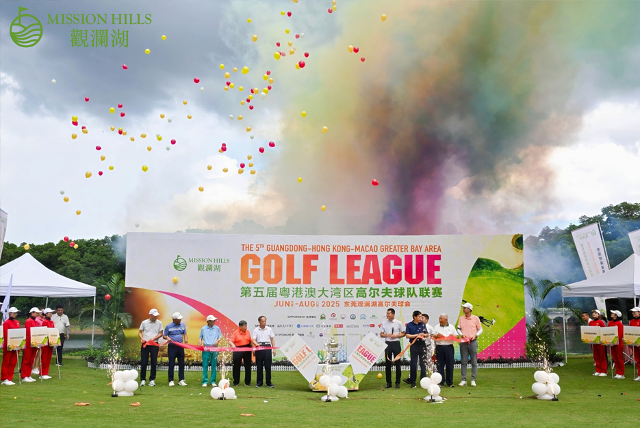 【2025年6月11日,观澜湖】第五届粤港澳大湾区高尔夫球队联赛今日在东莞观澜湖盛大开幕,36支业余球队分别在东莞观澜湖格诺曼、利百特、安妮卡球场挥杆开赛。观澜湖高尔夫球会总经理韩志山,广东省各地区高协代表,各大球队参赛队员代表,观澜湖会员委员会以及赞助商代表等近300位嘉宾出席了开幕式。