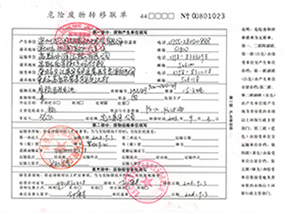 5) 从公司成立至今,废电瓶、废机油、废弃农药包装物等危险废物都是转运移交有资质的公司定期进行处理。