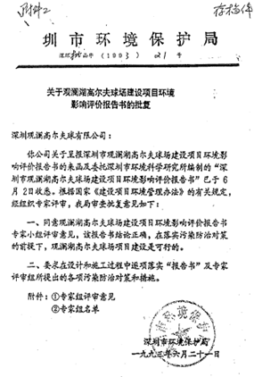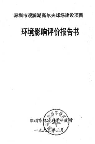 球场建设之初1992年就委托为深圳市环保局、深圳环境科学研究所进行分析、论证和编制《深圳观澜湖高尔夫球场建设项目环境影响评价报告书》