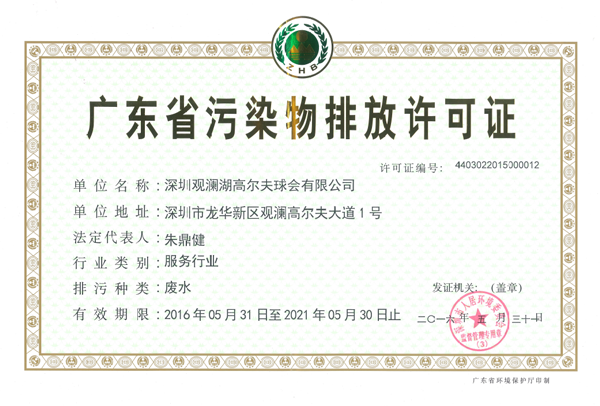 深圳观澜湖高尔夫球会有限公司环境信息