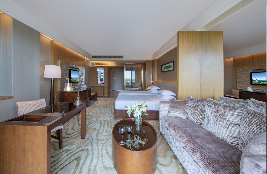 高级尊尚客房面积约60平方米。特别悉心设计,室内设计瑰丽堂皇,设有宽敞睡房及浴室