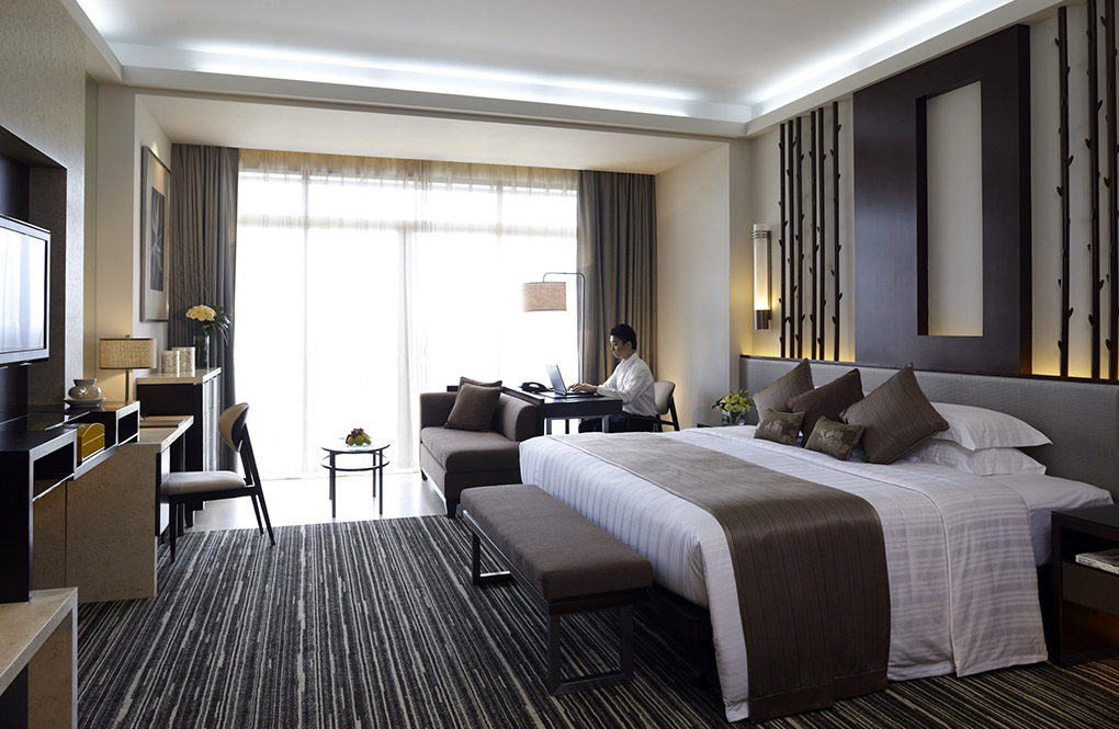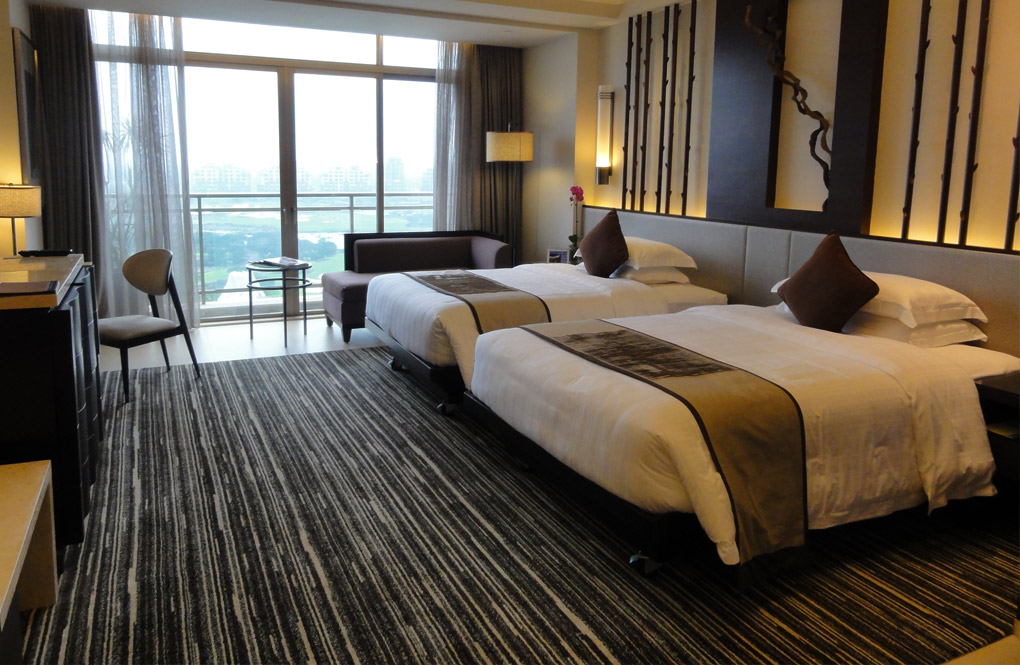 高级豪华客房面积60平方米,阳台上摆有茶桌供您在喝茶聊天之余欣赏美丽动人的泳池高尔夫球景和别墅高尔夫球景。此房型配备一张方便商务工作的办公桌,拥有多功能插座和U盘接口。浴室的客用洗浴用品为进口的洗发水,护发素,沐浴液,护体乳,以及护肤香皂。