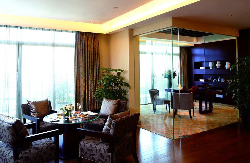 风尚开放式套房面积90平方米,您可在阳台上欣赏动人的别墅高尔夫球景。风尚开放式套房里设有私人厨房,并有一台小餐桌。除客房配备42寸电视,浴室亦装置26寸电视方便您使用。此房型浴室宽敞,配备按摩浴缸和精美的香熏炉。房内设有独立的更衣室。
