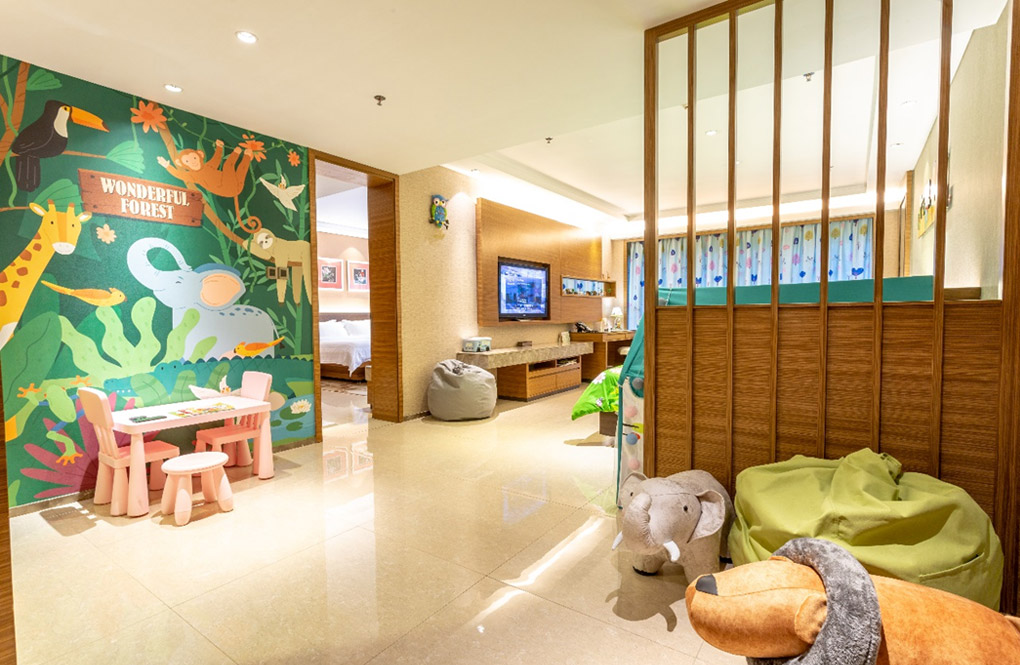 高级豪华亲子家庭套房,专为家庭客人设计,配备有两双床和一张大床,一如家居生活,小朋友有一个特色的欢乐空间的同时,也便于父母的照顾。