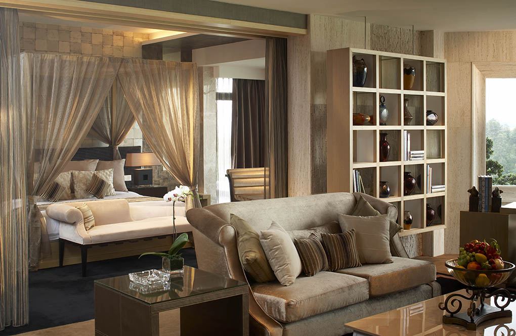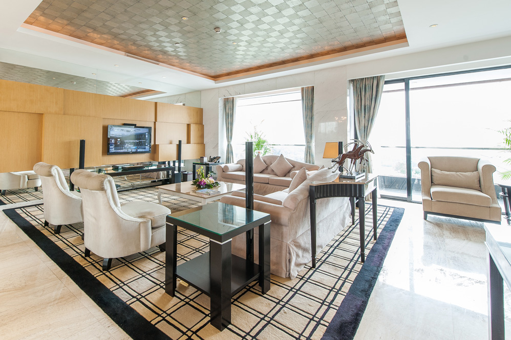 总统套房位于酒店最高楼层,房间面积约355平方米。柔和灯光与宽敞空间感相映配衬。总统套房美轮美奂,设施豪华,设有客厅、饭厅、两间睡房、衣帽间(连化妆间)、双人按摩房、两间浴室、干蒸房、两间客用洗手间、办公间、厨房及酒水吧,堪称尊贵住宿的典范。视野开阔,可享受球场景致。