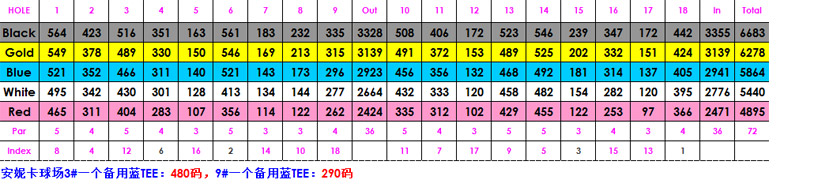 这是安妮卡索伦斯坦设计的第一个球场,体现了当今球场的设计潮流,即3杆洞、4杆洞、5杆洞都是6个,球场线条十分精致。这个球场不以长度取胜,但追求准确度,每一杆都要有精确的计算和落点,才能取得好成绩。整个球场比邻一个天然湖泊,面对一座巨型的山峰,修饰雅致的林景,塑造了一个优美的植物园气氛。
