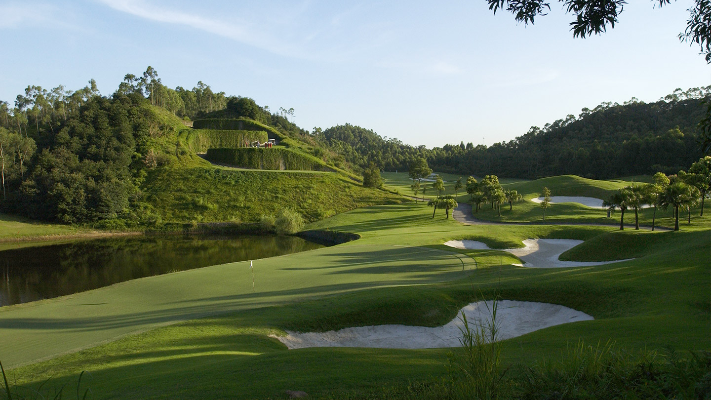 尾崎将司球场纵横于崇山峻岭之间,偌大的碧湖、慑人的瀑布、清澈的河流及别树一帜的石壁,构成一幅无可比拟的风景画。许多球道通过天然地势创造击球难度,尽现鬼斧神工,使球手常常在山穷水尽时,体验柳暗花明的喜悦。第9洞和第18洞果岭连为一体,前所未见;从第12洞果岭到13号发球台,需要穿过85米的隧道,有如走进世外桃源,令球手津津乐道。